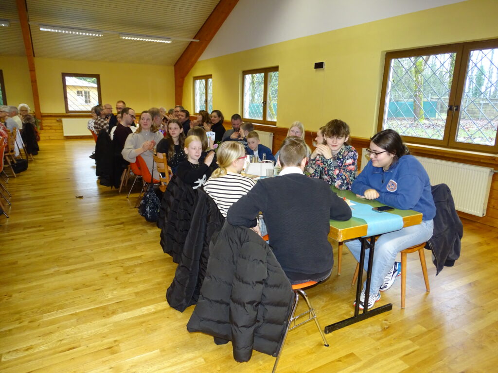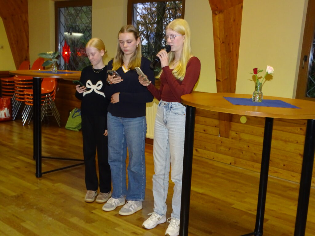 Nach einem reichhaltigen Buffet kam es zum Höhepunkt mit der Inthronisierung einer Königin oder eines Königs in der Tradition des französischen „Galette des rois“. Um diese Tradition zu würdigen, trugen Clara Coberger, Rahel und Ida Zimmermann die Geschichte der Heiligen Drei Könige vor.