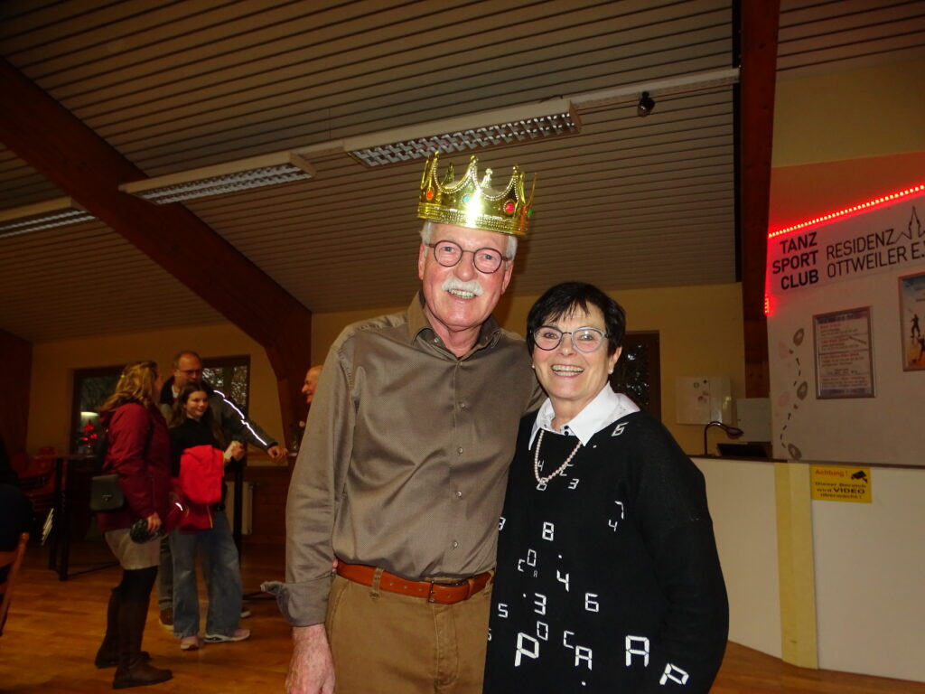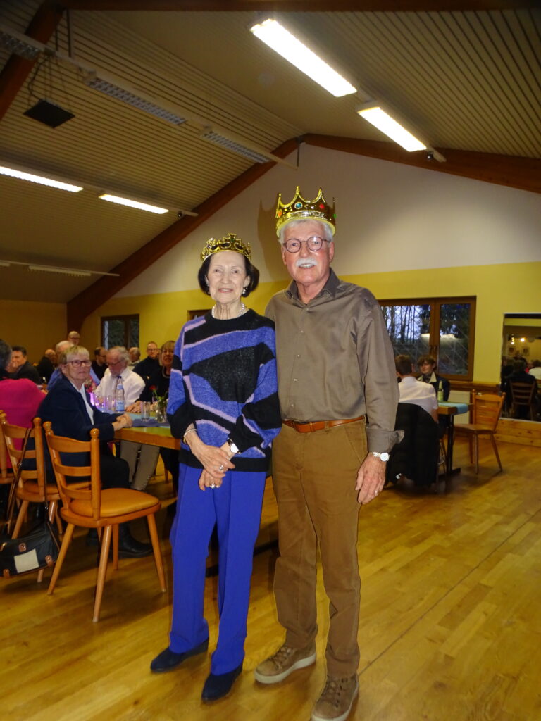 Jeder Gast erhielt ein Stück Kuchen, wobei in einem ein Glücksbringer eingebacken war, um die Königin oder den König zu küren. Frau Irene Funk und Frank Pampa erhielten aus der Hand des Vorsitzenden die Kronen als Königin und König der Herzen.