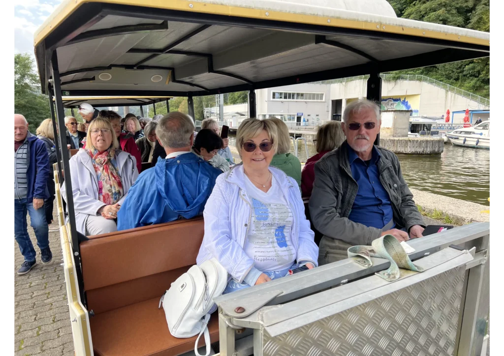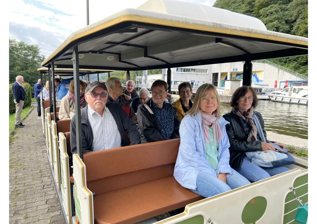 Der Ausflug des Städtepartnerschaftsvereins führte im September nach Arzviller und Saverne. Am Morgen besichtigte man das Schiffshebewerk Saint Louis Arzviller am Rhein-Marne-Kanal. Dort werden die Schiffe in einem 41 m langen mit Wasser gefüllten Trog auf einer schiefen Ebene mit einem Gefälle von 41 % zu Tal oder nach oben befördert und überwinden einen Höhenunterschied von 44 m. Sowohl der Trog als auch die beiden Gegengewichte haben ein Gewicht von 900 Tonnen und werden von zwei Elektromotoren mit je 120 PS angetrieben. Das Schiffshebewerk ersetzt eine Kette von 17 aufeinanderfolgenden Schleusen auf einer Länge von 4 km, für die man früher einen ganzen Tag brauchte. Der gesamte Schleusenvorgang dauert heute etwa 25 Minuten von der Einfahrt der Schiffe in den Trog bis zur Ausfahrt in den Kanal. Mit der Inbetriebnahme des Schiffshebewerkes 1969 wurde das Schleusenwärtertal gesperrt, konnte aber mit der Bimmelbahn unter sachkundiger Führung erkundet werden. Nach der Besichtigung des Maschinenraums stand das traditionelle Lyonerfrühstück mit Crément auf dem Programm.